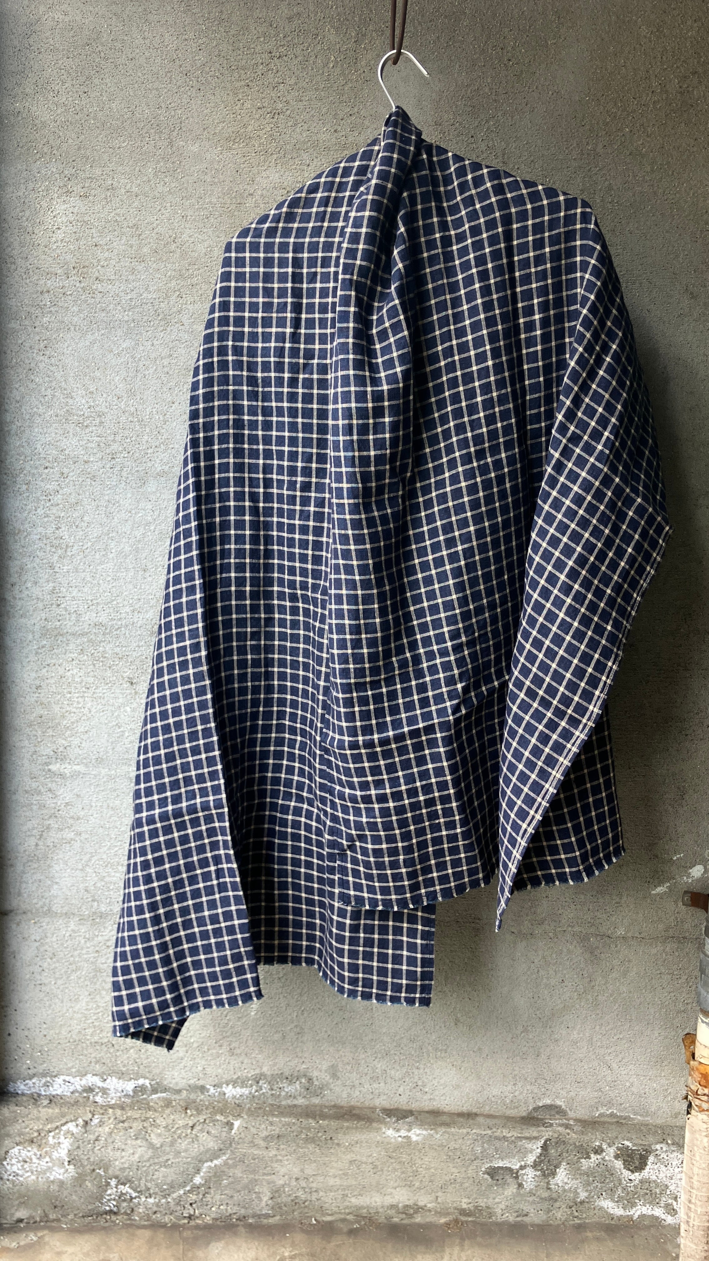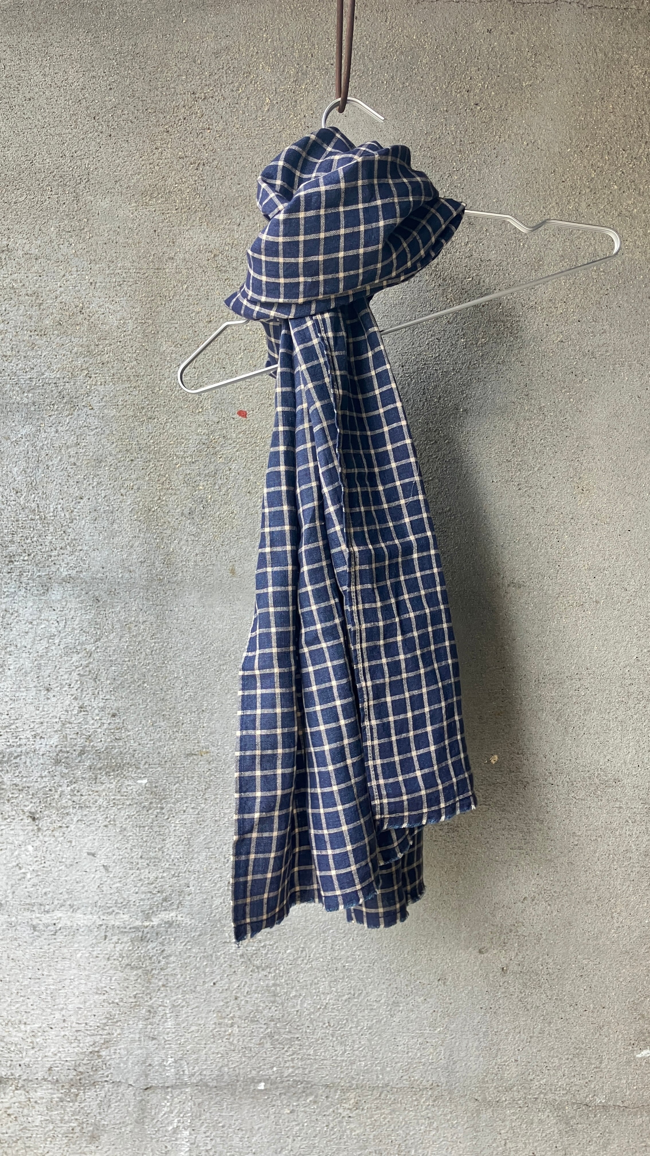 ブルーチェック柄 リトアニアリネンの大判ストール